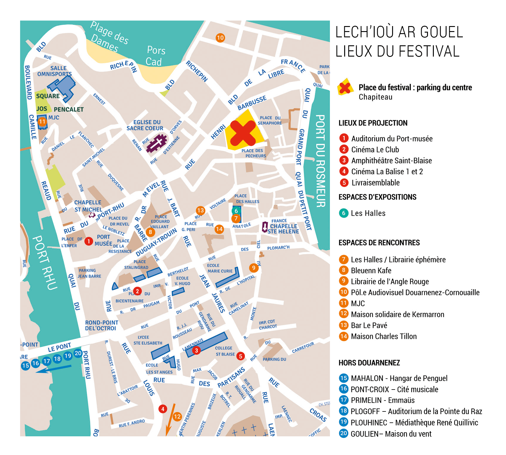 C’est sur cette place que se trouvent l’accueil des festivalier·es, la restauration, les bars, le salon de thé, les causeries de 18h, les concerts, l’organisation et l’accueil des invité·es, professionnel·es et journalistes.